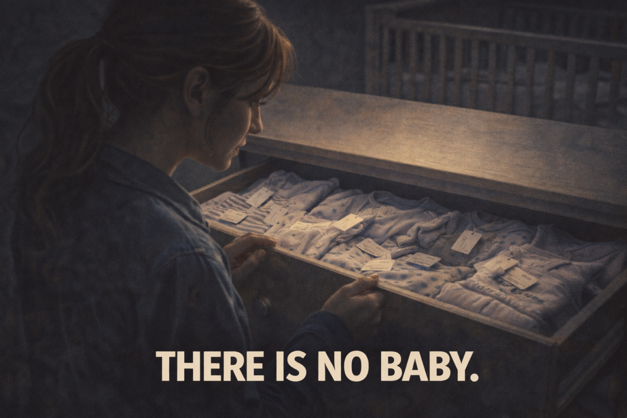 Sarah opens the nursery drawer and stares at rows of pristine baby clothes. The tags hang from every onesie, every sleeper, every tiny sock. Six months of careful purchases, all unworn.