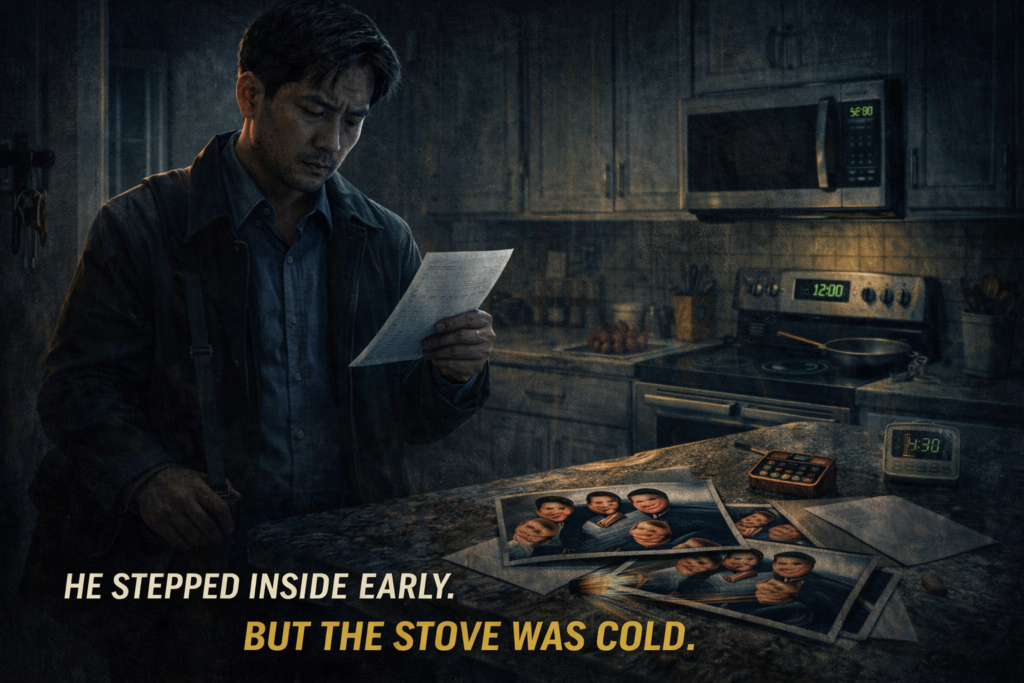 He stepped inside early — the air smelled like dinner… But the stove was cold.