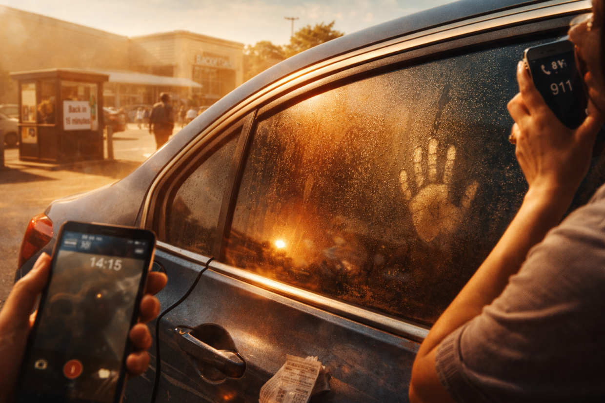 Sarah: I heard a child crying from inside a locked car. The windows were fogged, and the temperature was in the nineties. I called 911 immediately.