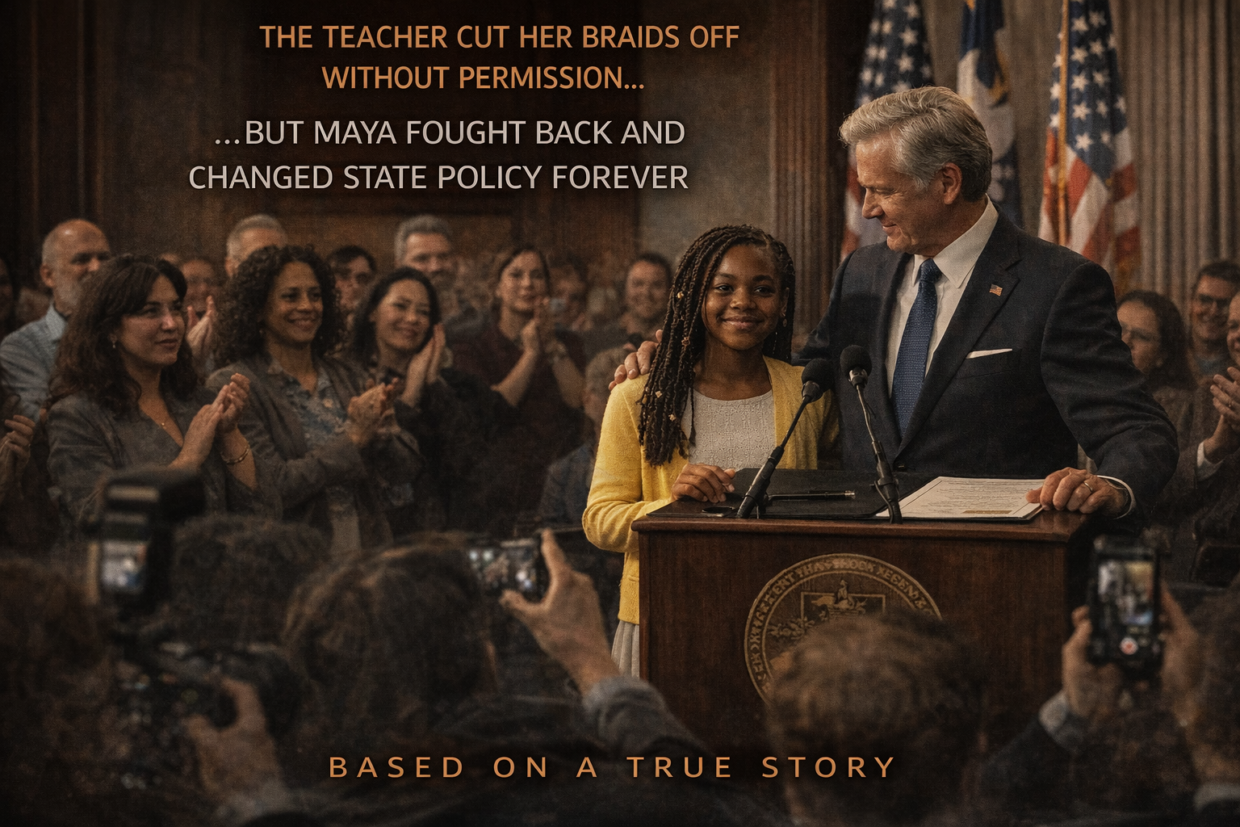 “There’s a girl in fourth grade named Brianna,” Maya said. “Her mom had the same thing happen to her when she was little. And nobody did anything. And I keep thinking about that.” She paused. “This law isn’t really about me. I’m okay. My hair grew back.” She touched one of her braids lightly. “It’s for all the kids it happened to before, when there was no camera and no board meeting and no law. It’s for Brianna’s mom.”